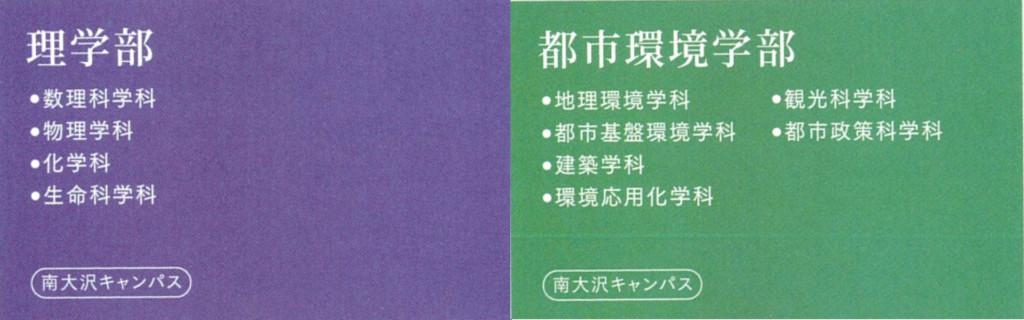 都市環境学部は、地理環境学科、都市基盤環境学科、建築学科、環境応用化学科、観光科学科、都市政策科学科の6学科で、都市政策科学科は文系からも受験が可能になっています。
