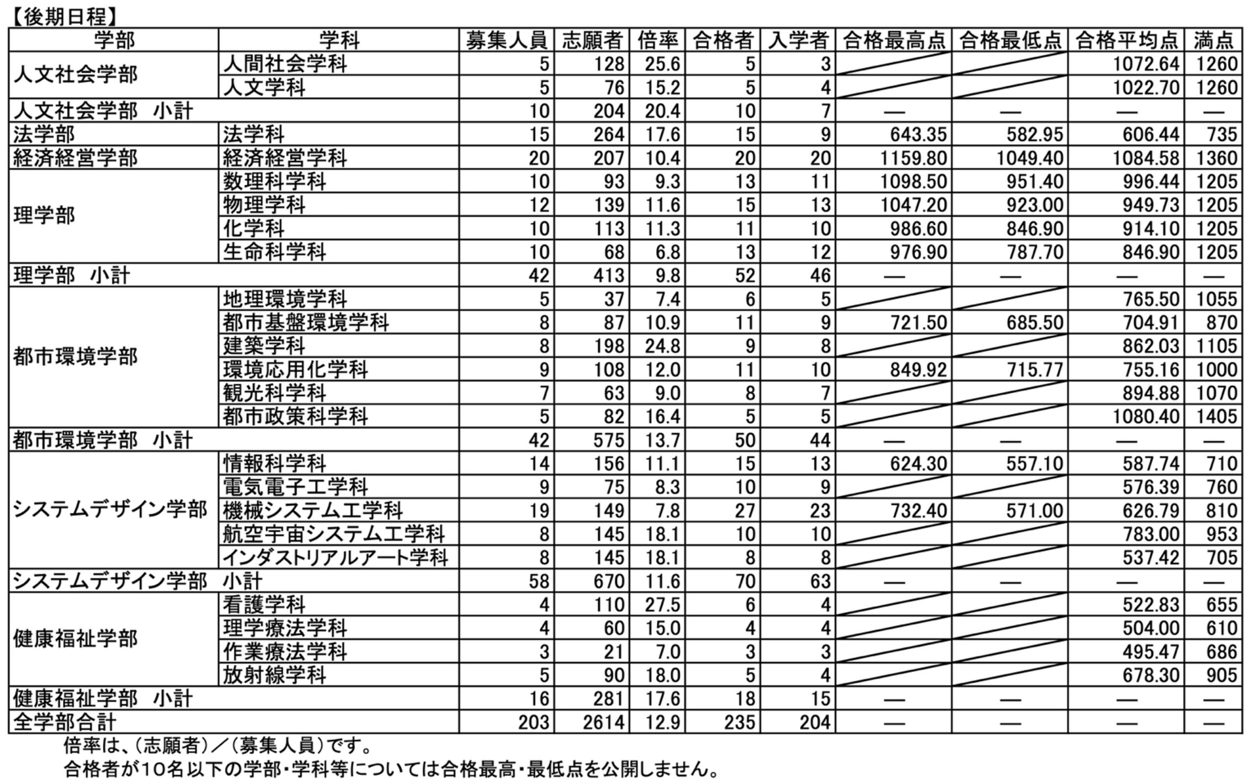 東京都立大学は、全学部全学科で後期日程が実施されています。
