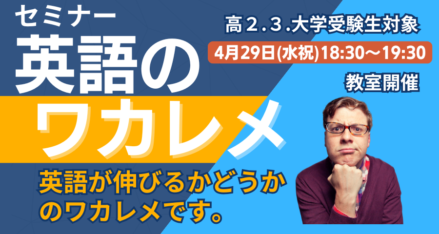 セミナー「英語のワカレメ」高2~3・大学受験生対象【4/29祝】